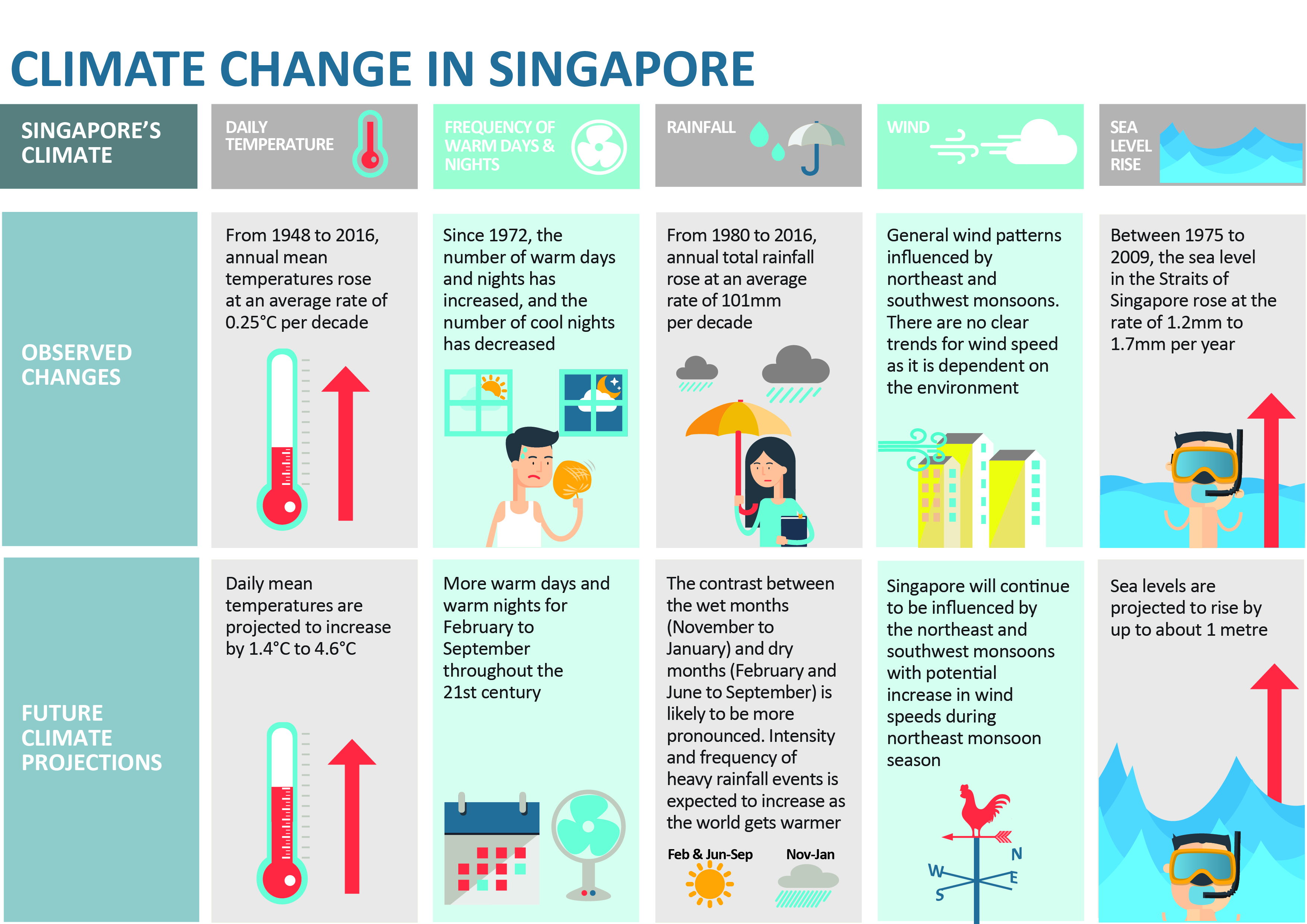 According to the official Climate Change in Singapore report as shown in the infographic above,